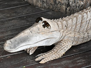 Die reetgedeckten Konstruktionen stehen alle auf ca. 2 Meter hohen Holzpfählen, so können die Tiere ungehindert ans Wasser ziehen. Lange Holzplanken-Wege auf Stelzen in gleicher Höhe führen zu den Zelten, wer hier ganz am Ende wohnt der hat einen langen Weg zu laufen. Vom Hauptweg zweigen die Zuwege zu den Zelten ab, die Nummer der Unterkunft steht am der Abzweigung auf dem Boden. Da das ganze Camp nicht eingezäunt ist, stehen und liegen hier schon mal Büffel oder Nyalas unter dem Weg oder neben den Zelten.
