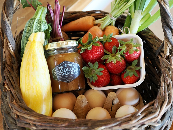 Wer damit leben kann, der findet in dem gemütlichen Cottage alles, was man sonst so braucht. Zur Begrüßung stand ein Körbchen in der Küche, gefüllt mit diversem Gemüse und eigenem Honig von der Farm plus 6 kleine Eier der hauseigenen Hühner. Man darf sich auch im Garten der Farm bei reifen Kräutern und Gemüse selbst bedienen. Wohnbereich und Bad waren mit frischen Blumen dekoriert.
