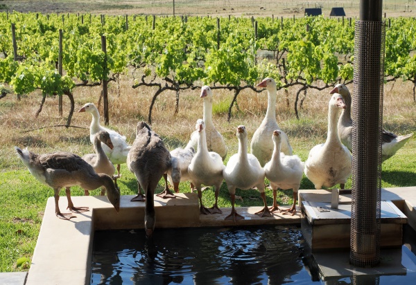 Bei der Ankunft staunten wir erst einmal, denn auf unserem Rasen sass eine schnatternde Horde Gänse. Sie entfernten sich etwas missmutig, als wir ausstiegen. Leider kamen sie an diesem Abend und am folgenden Morgen wieder, um aus unserem kleinen Pool zu trinken und daruaf zu schwimmen. Nicht ohne einiges zu hinterlassen, so fiel am ersten Abend dann ein warmes Bad aus.