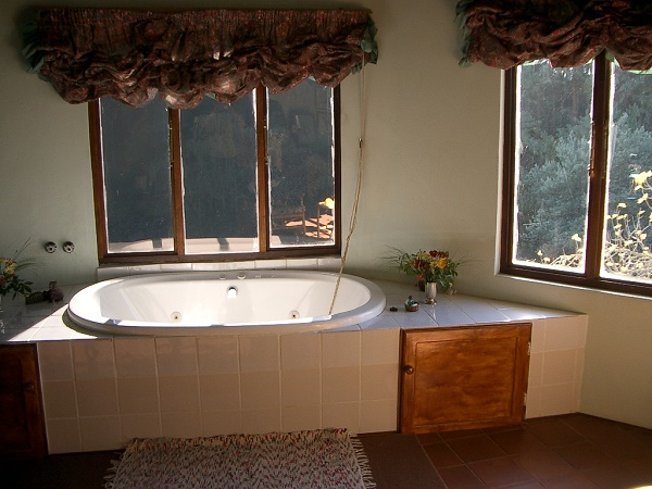 Die Fenster dahinter sind etwas verdunkelt, so das man beim Baden direkt hinunter zum Fluss schauen kann. Die Wanne ist groß genug für zwei Personen und vor allem an den kühlen Herbstabenden im Mai wussten wir sie sehr zu schätzen. Im Bad gibt es dann zusätzlich noch eine geräumige Dusche.