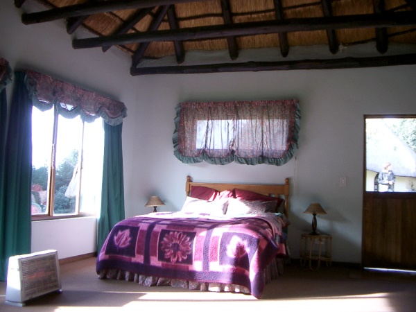 Wir haben uns für das Honeymoon-Zimmer entschieden, es heißt "The Owl and the Pussycat". Benannt nach der Dekoration, denn überall gibt es Eulen und Katzen: Als Wandgemälde, auf Bildern oder als Deko-Figürchen. Das Zimmer ist sehr groß, mit vielen Fenstern durch die man einen herrlichen Blick auf den Lions River geniesst.
