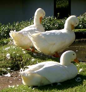 Wunderbar, zwei Stück davon machen satt bis weit nach Mittag... Während man beim Frühstück sitzt machen die Hausenten ihren täglichen Kontrollgang ums Haus, um etwas an den Gräsern und Kräutern zu zupfen. Kurz danach watscheln sie ganz eifrig hinter der Frau oder dem Mann mit dem Futter her.