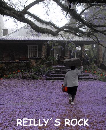 Das war schon direkt bei unserer Ankunft so. Kurz zuvor hatte es heftig geregnet, die Wolken hingen noch im Berg. Der Regen hatte die lila Jacaranda-Blüten vom dem riesigen Baum direkt vorm Haus herunter gefegt. Die lagen jetzt wie ein Teppich auf dem Rasen, den weißen Gartenmöbeln und dem Haus. Dazu noch ein paar Nebelfetzen zwischen den flechtenbehangenen Ästen und wir kamen uns vor wie in einem Märchenland. Ein Traum für Fotografen.