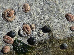 Daher hier ein paar frische Eindrücke vom Strand vor dem Ort, der an der einen Seite vom Fischerhafen und auf der anderen Seite, direkt vor unserer Unterkunft, von einem felsigen Abschnitt begrenzt wird. Dieser nennt sich Eerste Mosselbank, was schon einiges aussagt. Bei Ebbe ernten die Einheimischen hier ihre Muscheln, die dicht an dicht auf dem Gestein wachsen. Dann bilden sich kleine Pools aus Wasser, in denen man Fische und anderes Meeresgetier beobachten kann. Dicke Stengel von Kelp schwimmen zwischen den Felsen.