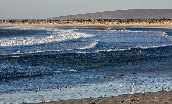 Nördlich der ersten Muschelbank zieht sich der feine weiße Sandstrand noch mehrere Kilometer weit in Richtung Norden bis zur Tweede Mosselbank. Das ist Afrikaans und einfach mit zweiter Muschelbank zu übersetzen. Zur richtigen Jahreszeit kann man direkt von den Dünen aus Wale und Delfine im Wasser beobachten.