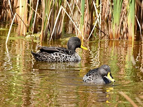 Nur ein paar Kilometer, nachdem man das südliche Eingangstor zum West Coast National Park passiert hat, findet man eine Abzweigung zu einem kleinen Bird Hide am Abrahamskraal Waterhole. Im März 2018 war es überall an der Westküste auf Grund der schlimmen Dürre sehr trocken, hier gab es noch Wasser. Dass wussten auch einige Enten, Blesshühner und Ibisse zu schätzen, die hier eine Rast machten. Da wir leider um die Mittagszeit vor Ort waren, schliefen die meisten. Direkt um die Ecke befindet sich eines der Cottages, in denen man im Park wohnen kann.