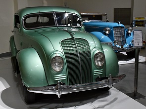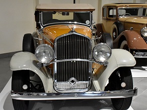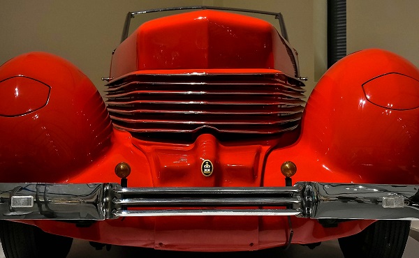 Im ersten Gebäude links sind die ältesten und für mich schönsten Stücke mit Fahrzeugen verschiedener Hersteller von 1904 bis 1938. Ganz zu Anfang das erste Modell von Ford, das Modell A. Ein Stück weiter ein motorisiertes Dreirad mit Korbliege vorne dran und einen offener Autobus auf Basis eines Ford T von 1915. Gegenüber stehen unter anderem ein Bugatti Type 23 von 1925, ein Rolls Royce Phantom 1 aus dem Jahr 1928 und ein Auburn von 1936. Toll auch der knallrote Cord 810 Convertible von 1936. Dazu noch klassische Heckmotor-Streamliner von Skoda oder DKW.