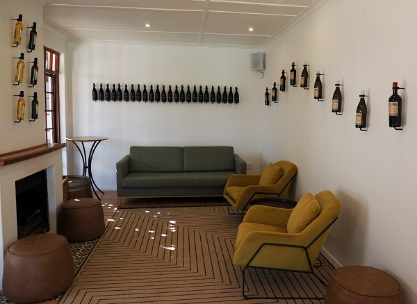 An der Wand viel lokale und internationale Kunst und Bilder vom Hausherren. Hier kauften wir je eine Flasche Graham Beck Cap Classique BRUT Rosé, Graham Beck Blanc de Blancs 2016 und Graham Beck Cap Classique BRUT.