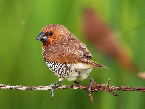 Diese winzigen Sperlingsvögel und Astrilde huschen geschickt zwischen den Halmen umher, um sich an den Sämereien gütlich zu tun.