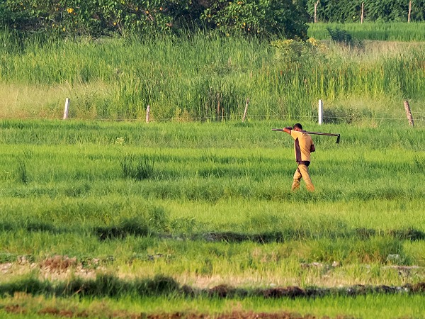 Hier am Feld ist es meistens der Rotlappenkiebitz (Red-wattled Lapwing). Er hält sich bevorzugt auf trockeneren Abschnitten innerhalb der Reisfelder oder auf den Dämmen auf, wo er nach Insekten und kleinen Wirbellosen pickt.