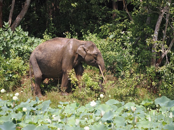Die Anfahrt und den Vormittag mit den Sichtungen habe ich auf der Seite Morgen in Block 5 beschrieben. Da wir eine Ganztages-Safari im Yala Nationalpark gebucht hatten, wurde gegen Mittag die Anzahl der Fahrzeuge geringer. Denn alle, die nur halbtags hier waren, mussten den Park verlassen.