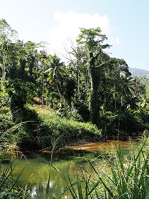 Der Gin Ganga, einer der bedeutendsten Flüsse im Südwesten Sri Lankas, entspringt im Herzen des Weltnaturerbes und schlängelt sich wie eine Lebensader durch das Tal. Ein Weg entlang seiner Ufer führt vorbei an kleinen Siedlungen, in denen das tägliche Leben noch sehr ursprünglich und einfach ist. Man beobachtet Dorfbewohner beim Waschen ihrer Wäsche am Flussufer oder Kinder, die im kühlen Nass spielen, während über ihnen die Kronen riesiger Bambusstauden im Wind schwanken.