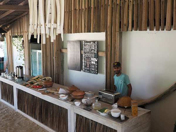 Das Buffet ist reichhaltig und bietet eine Mischung aus westlichen Klassikern und authentischen srilankischen Spezialitäten. Es steht immer jemand dahinter, der die Töpfe öffnet oder etwas anreicht. Es gibt meist eine Auswahl an verschiedenen Brotsorten, Eierspeisen werden frisch nach Wunsch zubereitet, dazu Joghurt, frische Früchte, Süßes und Käse.
