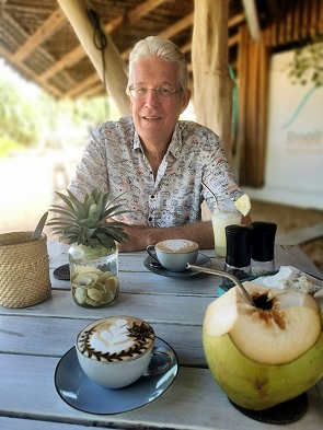 Der Kaffee hier ist sehr gut und kommt in allen nur denkbaren Formen aus der hochwertigen Siebträgermaschine. Was uns besonders gut gefiel: Man konnte sich alles Mögliche, was sonst auf der Getränkekarte steht, ohne Aufpreis ordern, egal ob Cappuccino, frisch gepresste Säfte von verschiedenen Früchten oder zu unserer großen Freude auch Kokosnüsse.