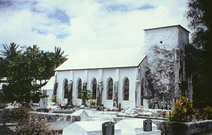 Kurz hinter Cooks Corner liegt eine protestantische Kirche, sie wurde aus weißen Korallenblöcken wie eine mittelalterliche Trutzburg erbaut. Die Ausswände sind etwas angeschimmelt, was man auf dem Foto oben auch erkennen kann. Diese Kirche wurde im Jahr 1835 erbaut.