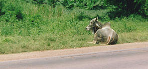 Irgendwo im Hinterland von Hua Hin sollte noch der schöne Pala-U Wasserfall sein. Nachdem wir stundenlang nur Ananas gesehen hatten, kein Hinweißchild auf englisch auftauchte und eine Befragung der ortsansässigen Bevölkerung mit Händen und Füßen auch keine Klarheit brachte, haben wir dann irgendwann entnervt aufgegeben und sind nach Hua Hin zurückgefahren. Dafür lagen malerisch ein paar Wasserbüffel am Straßenrand und in kleinen Dörfern war man als Tourist noch eine Sehenswürdigkeit. Ein heftiger Platzregen durchnässte uns dann auch noch bis auf die Haut, zwar warm, aber mit nasser Brille fährt es sich auf einem Mofa doch eher unangenehm.