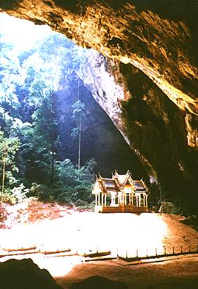 Die größte und bekannteste Höhle im Nationalpark ist die Phraya Nakhon Höhle, in der sich ein hünscher Pavillon befindet. Phra Thinang Khuha Kharuhat, der Pavillon mit einem vierfachen Dach wurde im Jahr 1890 gebaut und ist das Wahrzeichen der Provinz Prachuap Khiri Khan. Auf Grund des anhaltend wechselhaften und schlechten Wetters damals im Oktober war ich leider nicht selbst dort. Deshalb wurde mir das schöne Foto rechts von einer netten Kollegin zur Verfügung gestelllt, vielen Dank dafür.