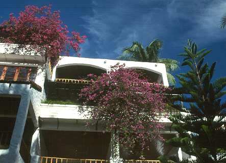Weiße Mauern und blühende Pflanzen geben gute Fotomotive vor stahlblauem Himmel. Dazu muss man hier das Hotel nicht verlassen...