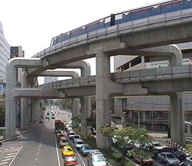 BTSBangkok drohte regelrecht an Staus und Smog zu ersticken. Für viele Reisende war die Stadt jahrelang der Horror schlechthin. Die Menschen sind hier zum großen Teil motorisiert. Zu den sechs Millionen Einwohnern kommen zusätzlich drei Millionen Pendler aus dem Umland, die eine Alternative zu den schnellen Booten und Fähren auf dem Chao-Phraya-Fluss brauchen. Also brauchte Bangkok wie jede andere Großstadt der Welt ein funktionierendes, modernes Nahverkehrssystem.
